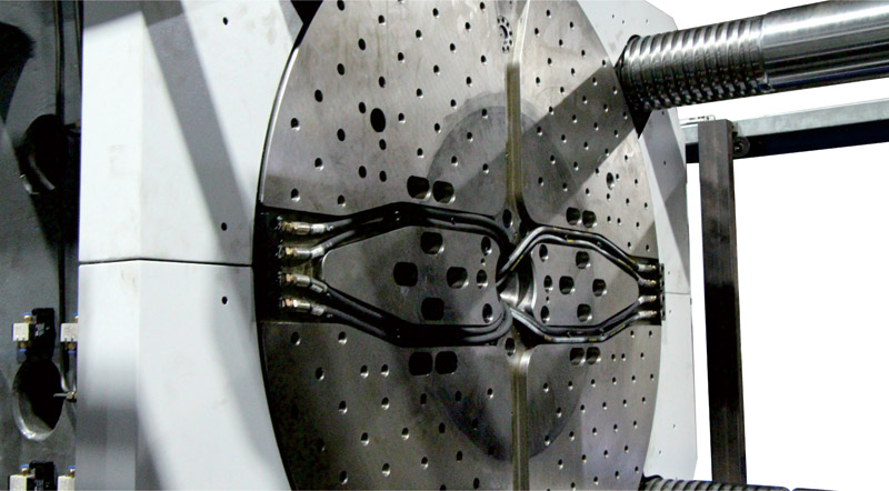 獨(dú)特精準(zhǔn)的轉(zhuǎn)盤定準(zhǔn)裝置,可確保鎖模平穩(wěn),防止模具損傷。